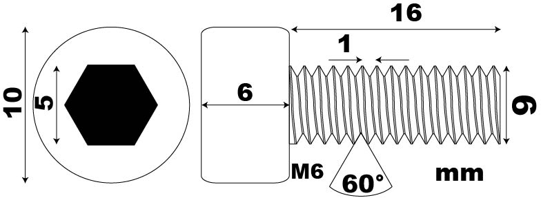 name: SCREW ALLEN HEAD, M6 THREAD MM 1, DIAMETER 6, LENGTH 15, UNI 5931,DIN 912,ISO 4762