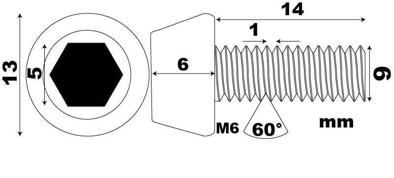 SCREW: HEX ALLEN CONIC HEAD, THREAD MM 1,0 (M6), DIAM. 6, LENGTH. 14 |