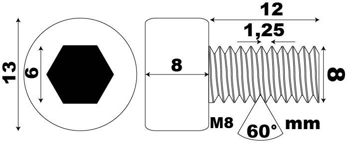 SCREW ALLEN HEAD, M8 THREAD MM 1.25, DIAMETER 8, LENGTH 12, UNI 5931,DIN 912,ISO 4762 |