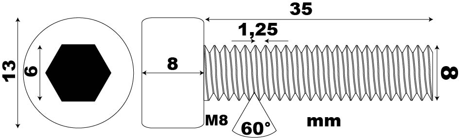 name: SCREW ALLEN HEAD, M8 THREAD MM 1.25, DIAMETER 8, LENGTH 35, UNI 5931,DIN 912,ISO 4762
