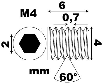 nome: VITE A GRANO M4, PASSO MM 0,7, DIAMETRO 4, LUNGHEZZA 6